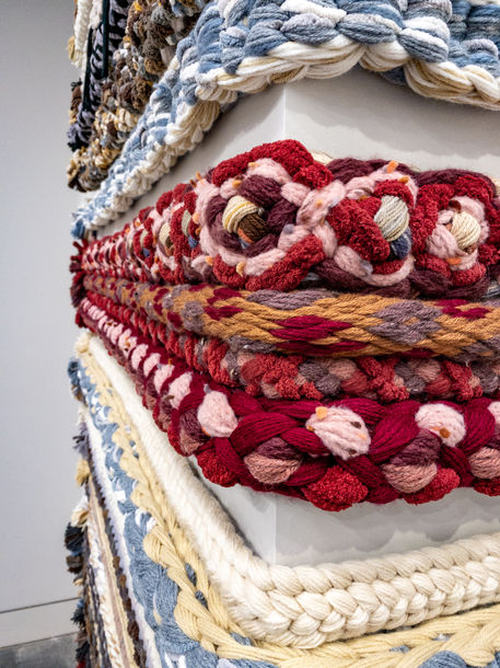 This body of work is a series hand-braided cords based on geologic formations and processes. The individual cords are woven with a Japanese Marudai loom used for Kumihimo, a traditional Japanese art form of making braids and cords. The colors and various cord patterns represent the visual appearance and textures associated with the lithology in the formations.